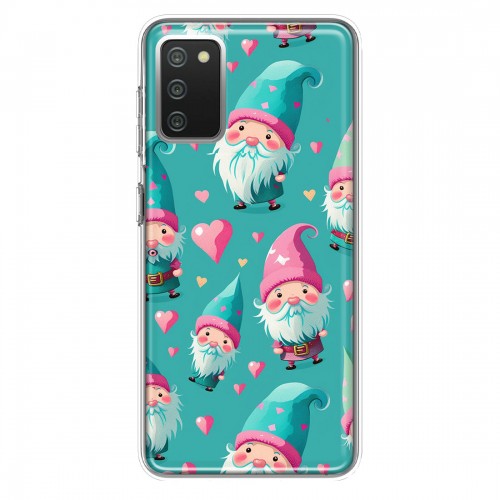 For Samsung Galaxy A02S Turquoise Pink Hearts Gnomes Design Hybrid Protective Phone Case Cover