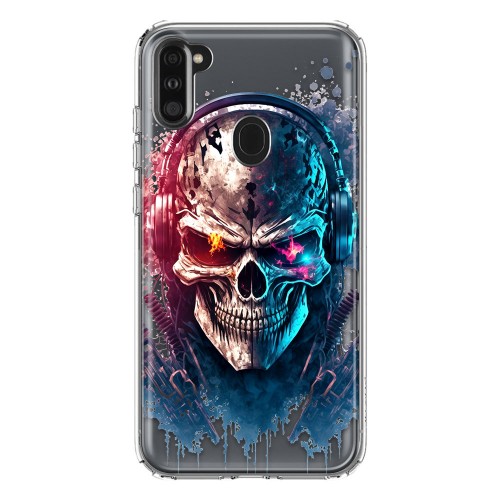 For Samsung Galaxy A11 Cyberpunk Machine Headphones Skull Double Layer Phone Case Cover
