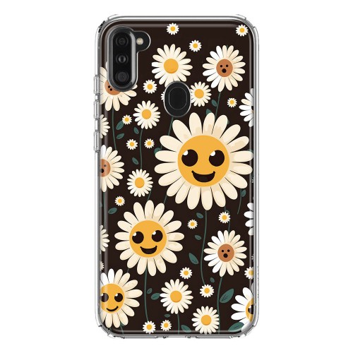 For Samsung Galaxy A11 Cute White Blue Daisies Gnomes Design Hybrid Protective Phone Case Cover