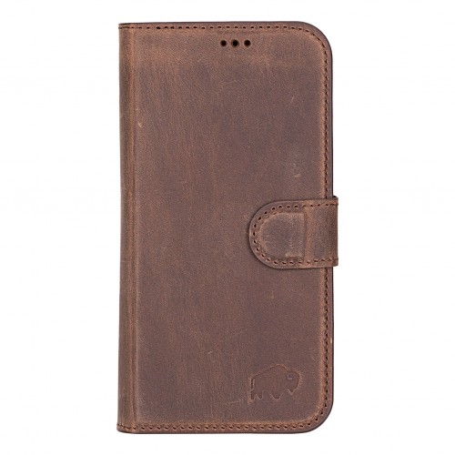 Carter Detachable Leather Wallet Case – iPhone 16e, Distressed Coffee