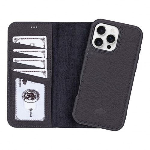 Carter Detachable Leather Wallet Case – iPhone 16 Pro Max, Pebble Black