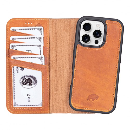 Carter Detachable Leather Wallet Case – iPhone 16 Pro, Golden Brown