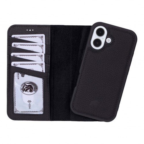 Carter Detachable Leather Wallet Case – iPhone 16, Pebble Black