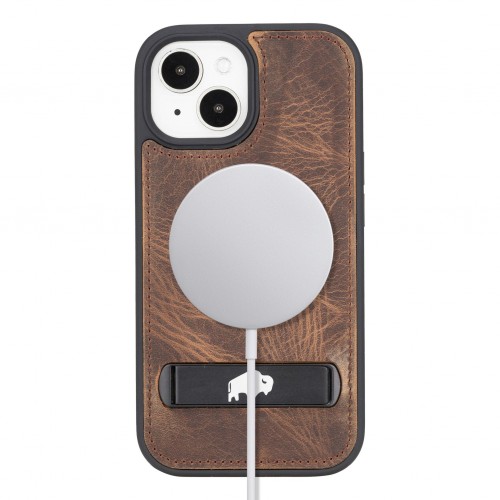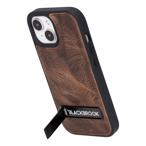 Reed Leather Snap‑On Case with Stand – iPhone 15, Distressed Coffee