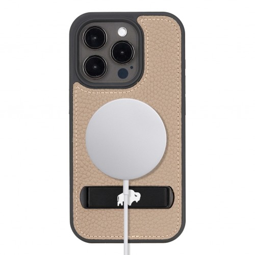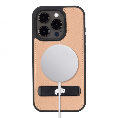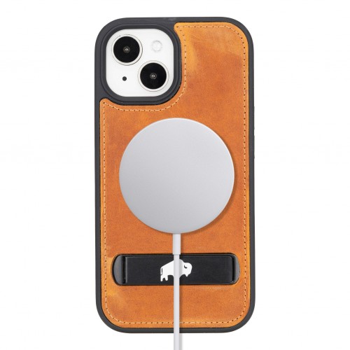 Reed Leather Snap‑On Case with Stand – iPhone 15, Burnished Tan