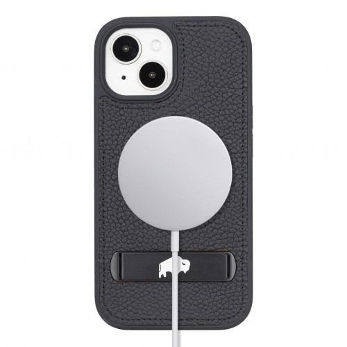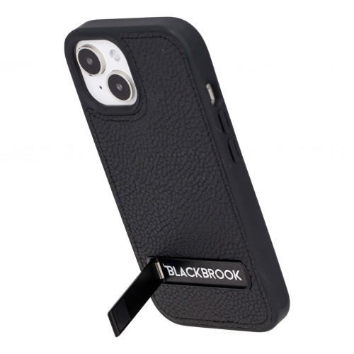 Reed Leather Snap‑On Case with Stand – iPhone 15, Pebble Black