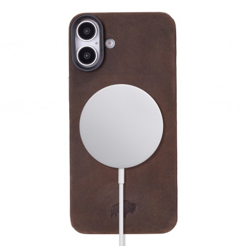 Rohan MagSafe Leather Back Case – iPhone 16 Plus, Distressed Coffee