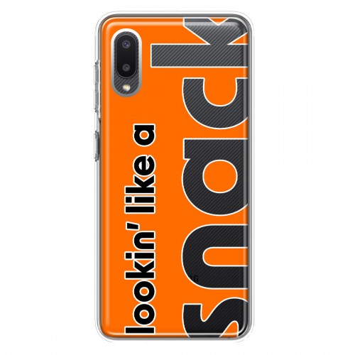 For Samsung Galaxy A02 Orange Clear Funny Text Quote Snack Design Hybrid Protective Phone Case Cover