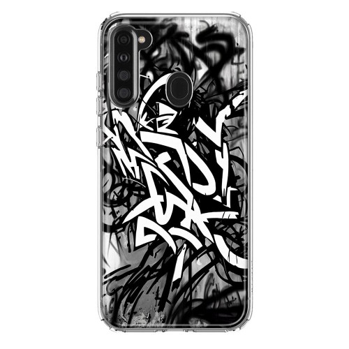For Samsung Galaxy A21 Black White Urban Graffiti Design Hybrid Protective Phone Case Cover