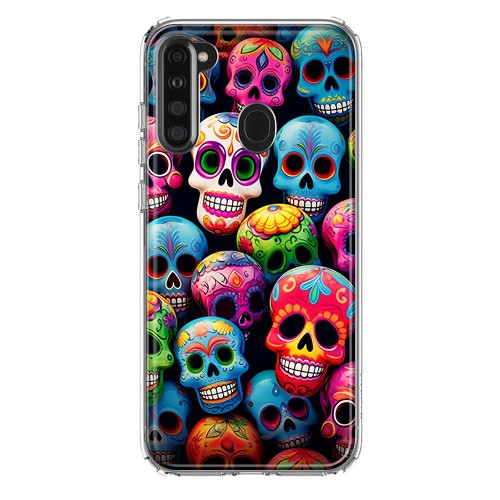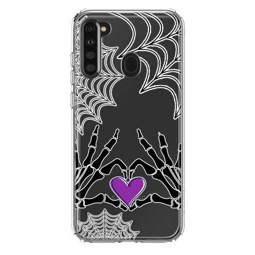 For Samsung Galaxy A21 Fantasy Skull Red Purple Roses Design Hybrid Protective Phone Case Cover