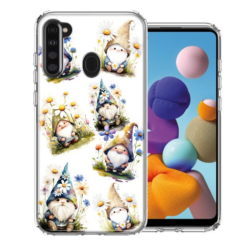 For Samsung Galaxy A21 Cute White Blue Daisies Gnomes Design Hybrid Protective Phone Case Cover