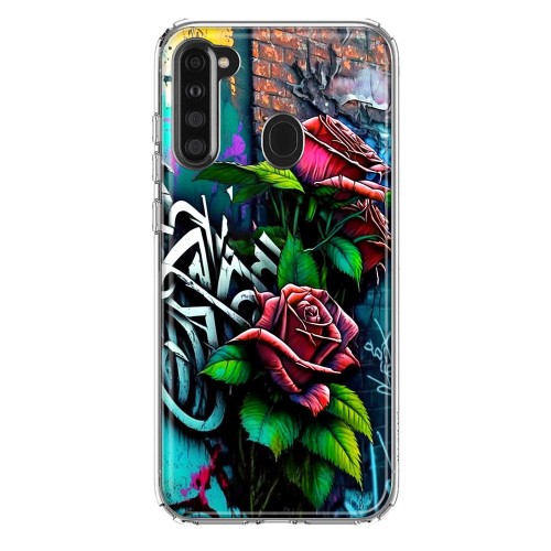 For Samsung Galaxy A21 Red Roses Graffiti Painting Art Design Hybrid Protective Phone Case Cover