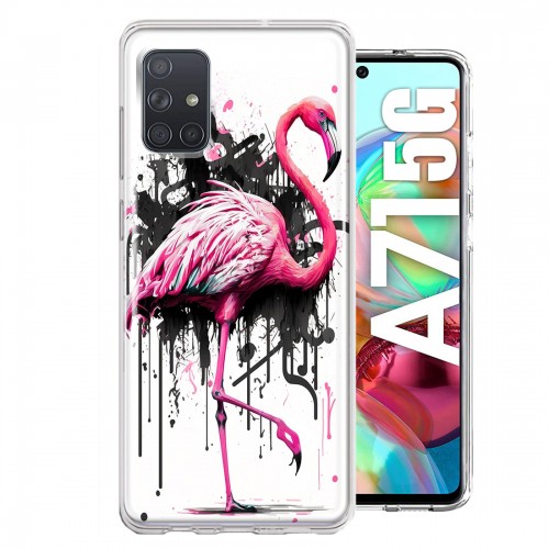 For Samsung Galaxy A71 4G Pink Flamingo Painting Graffiti Design Hybrid Protective Phone Case Cover