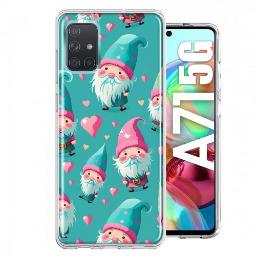 For Samsung Galaxy A71 4G Turquoise Pink Hearts Gnomes Design Hybrid Protective Phone Case Cover