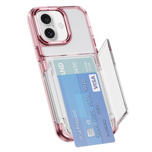 For iPhone 16 Plus Card Holder Acrylic Hybrid TPU Phone Case(Transparent Pink)