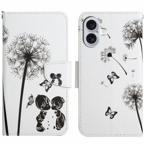 For iPhone 16 Plus 3D Colored Drawing Flip Leather Phone Case(Dandelions)