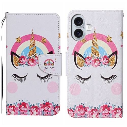 For iPhone 16 Plus 3D Colored Drawing Flip Leather Phone Case(Crown)