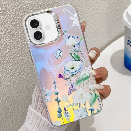 For iPhone 16 Plus Electroplating Laser Flower Texture TPU Phone Case(Blue Flower AH8)