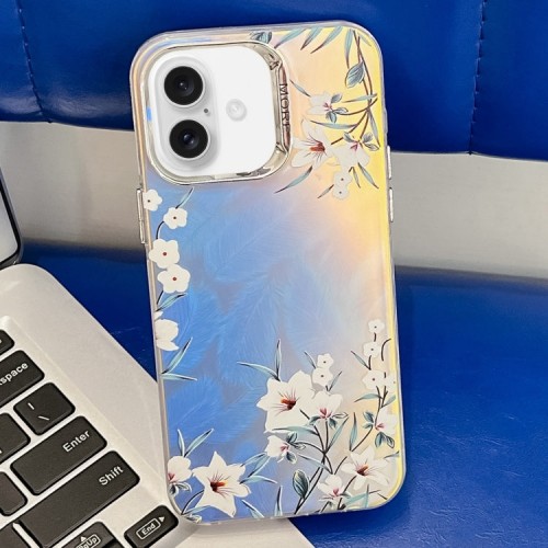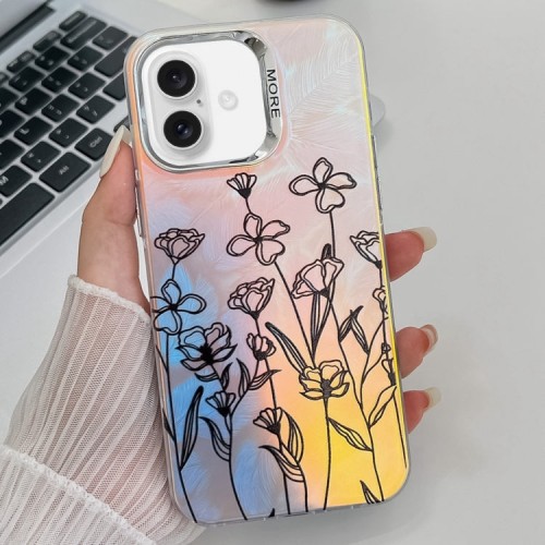 For iPhone 16 Plus Electroplating Laser Flower Texture TPU Phone Case(Drawn Flowers AH3)