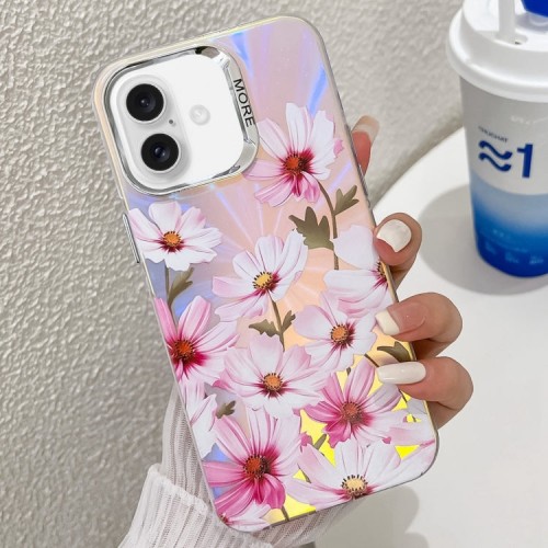 For iPhone 16 Plus Electroplating Laser Flower Texture TPU Phone Case(Cosmos Flower AH7)