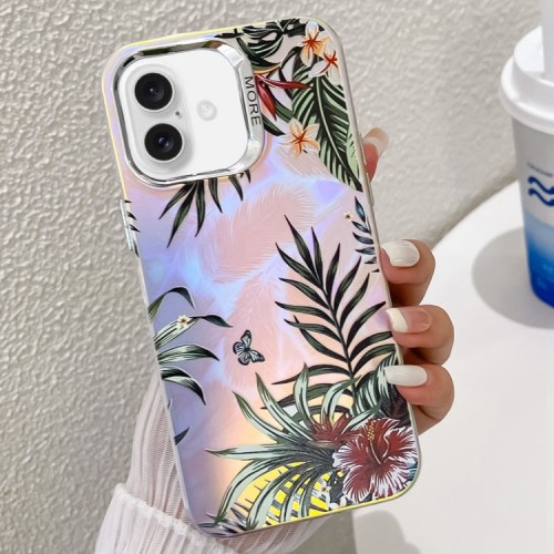 For iPhone 16 Plus Electroplating Laser Flower Texture TPU Phone Case(Leaves AH12)