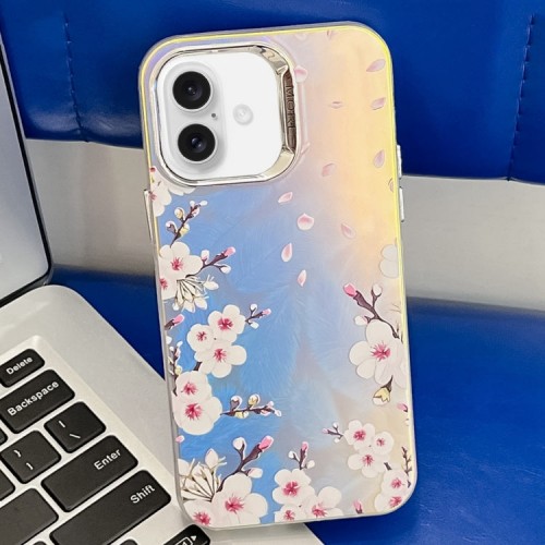 For iPhone 16 Plus Electroplating Laser Flower Texture TPU Phone Case(Plum Blossom AH18)