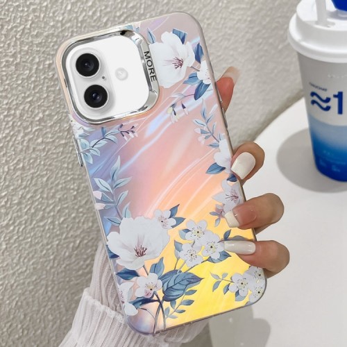 For iPhone 16 Plus Electroplating Laser Flower Texture TPU Phone Case(White Flower AH10)