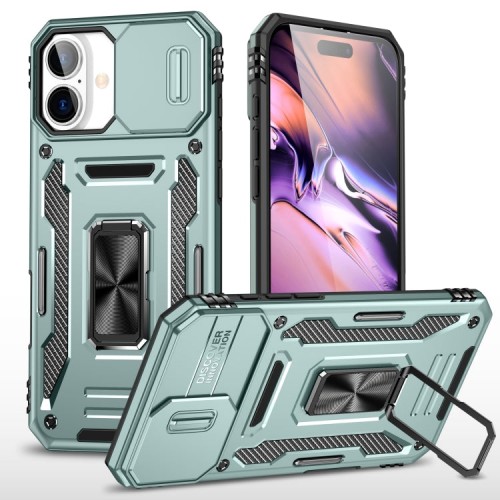 For iPhone 16 Plus Armor PC + TPU Camera Shield Phone Case(Alpine Green)