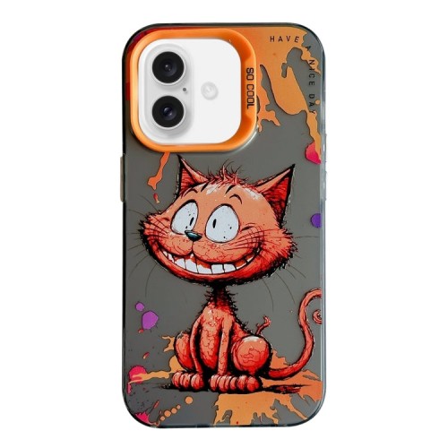 For iPhone 16 Plus Animal Pattern Oil Painting Series PC + TPU Phone Case(Smiling Cat)