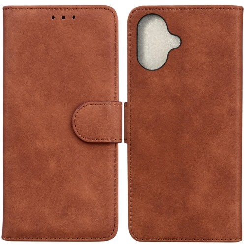 For iPhone 16 Plus Skin Feel Pure Color Flip Leather Phone Case(Brown)