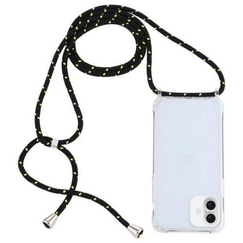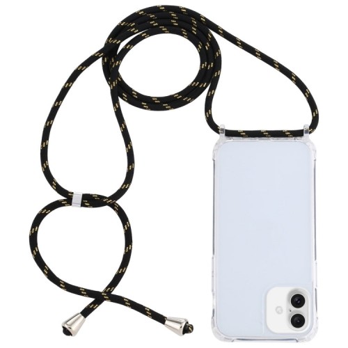 For iPhone 16 Plus Transparent Acrylic Airbag Shockproof Phone Protective Case with Lanyard(Black)