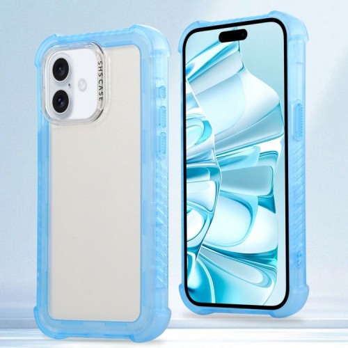 For iPhone 16 Plus Transparent Matte TPU Hybrid PC 3-in-1 Phone Case(Blue)