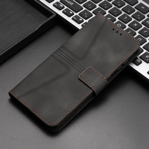 For iPhone 16 Plus Triangle Solid Color Leather Phone Case(Black)