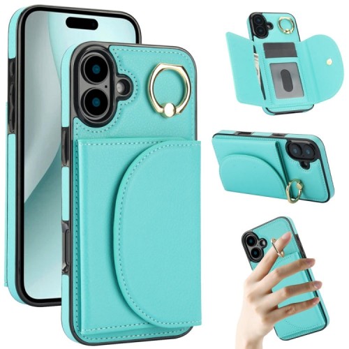 For iPhone 16 Plus YM007 Ring Holder Card Bag Skin Feel Phone Case(Green)