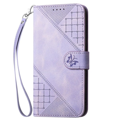 For iPhone 16 Plus YX0070 Carbon Fiber Buckle Leather Phone Case with Lanyard(Light Purple)