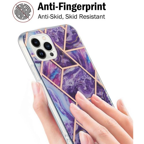 For iPhone 16 Pro Max Case Splicing IMD Marble Pattern Electroplated TPU Back Cover – Dark Purple