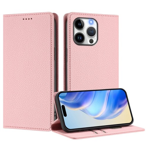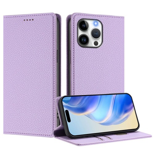 For iPhone 16 Pro Max Wallet Case RFID Blocking Litchi Texture Leather Mobile Cover – Light Purple
