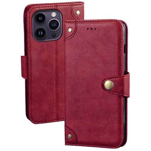 IDEWEI For iPhone 15 Phone Cover Slim-fit PU Leather Wallet Shockproof Phone Stand Case – Red