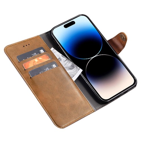 IDEWEI For iPhone 15 Phone Cover Slim-fit PU Leather Wallet Shockproof Phone Stand Case – Brown
