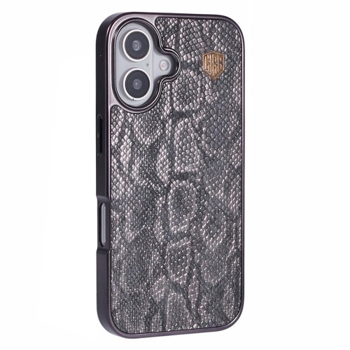 KIGC For iPhone 16 Case Compatible with MagSafe Snake Texture Leather+PC+TPU Back Cover – Grey