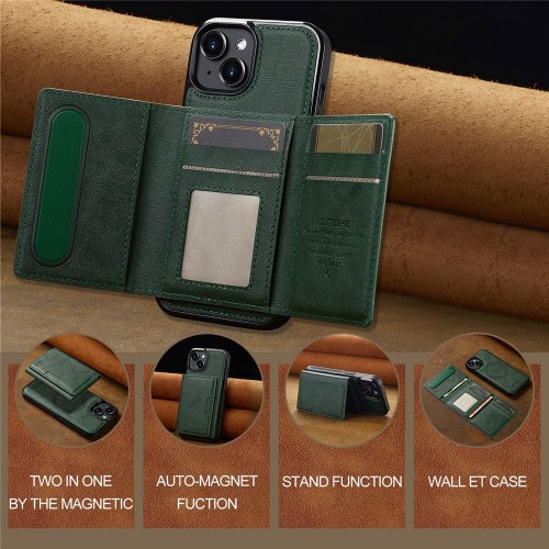 LC.IMEEKE L3 For iPhone 15 Plus Magnetic Case Detachable Card Holder Leather+TPU Mobile Cover – Red