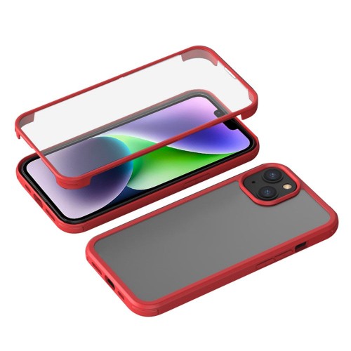 For iPhone 14 Single-sided Tempered Glass + TPU Phone Case Full Protection Anti-drop Cover – Red