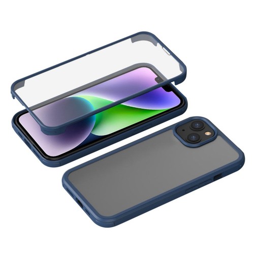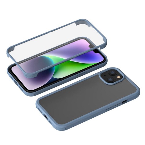 For iPhone 14 Single-sided Tempered Glass + TPU Phone Case Full Protection Anti-drop Cover – Blue