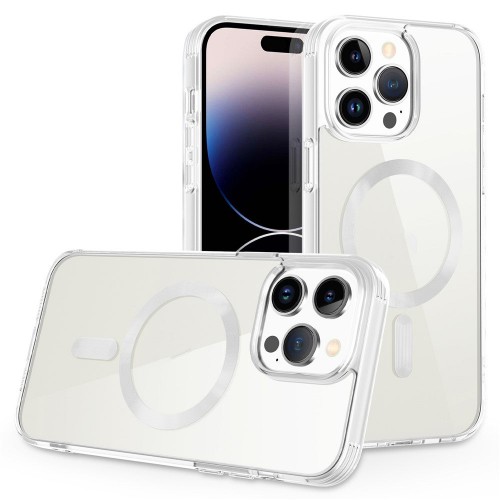 For iPhone 15 Pro Soft TPU+PC Phone Case Compatible with MagSafe Anti-Drop Slim Phone Cover – White
