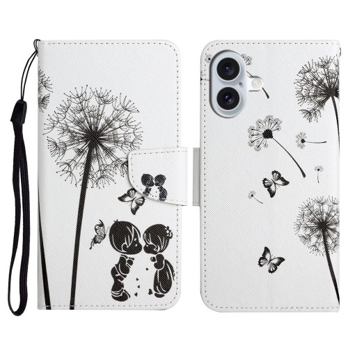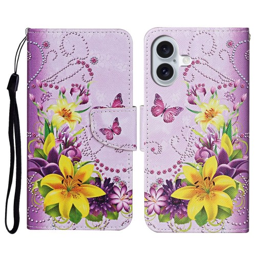 For iPhone 16 Case Pattern Printing Protective Leather Folio Phone Cover – Flower / Butterfly