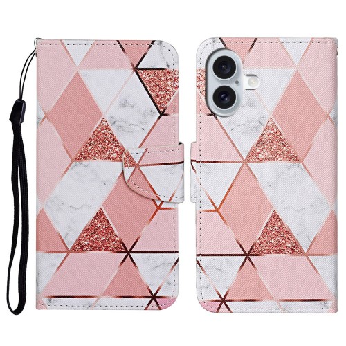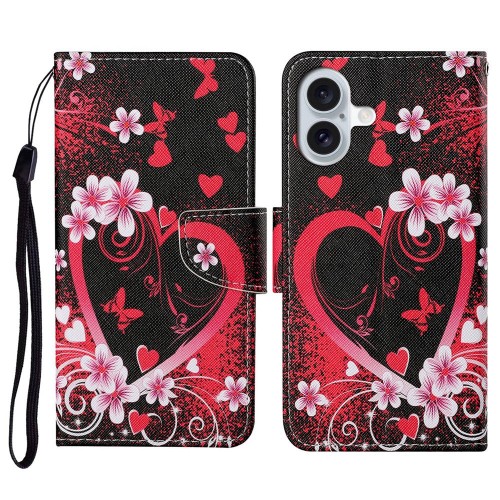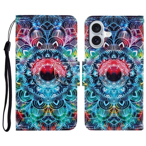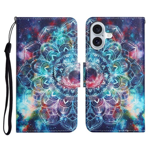 For iPhone 16 Case Pattern Printing Protective Leather Folio Phone Cover – Large Chrysanthemum