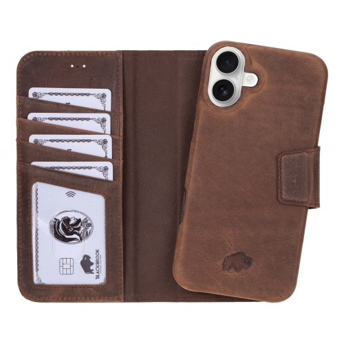 Burkley Leather Wallet Case – iPhone 16 Plus, Distressed Coffee