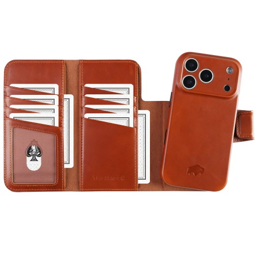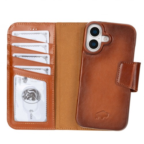 Burkley Leather 2 in 1 Wallet Case – iPhone 17, Burnished Tan