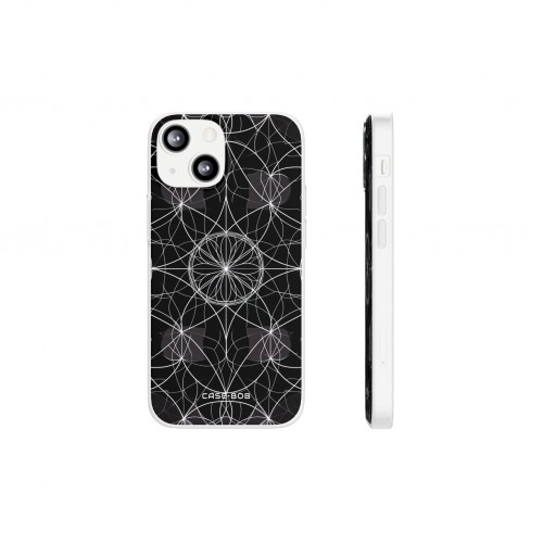 The main feature of this protective phone case design is a stark cliffside silhouette, defined by precise black lines in a striking monochrome palette. Sharp-edge contours form a bold pattern, while the illustrative motif utilizes negative space to create clean divisions and subtle contrast. Flowing linework along the cliff’s edge balances the angular forms, bringing visual coherence and dynamic style to the overall pattern.