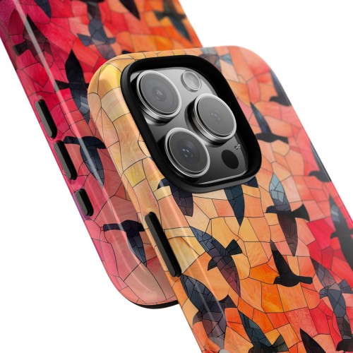The main feature of Crimson Flight is a bold, geometric pattern in dynamic red tones, delivering a striking visual centerpiece for your protective phone case. Surrounding shapes and crisp lines accentuate the motif, adding contrast and directing flow, while careful spacing provides balance within the design. Distinct sharp angles and precise layering create a confident, modern mood—each element reflects a style driven by artistic geometry and clean design for those who value visual precision and craftsmanship in their accessories.